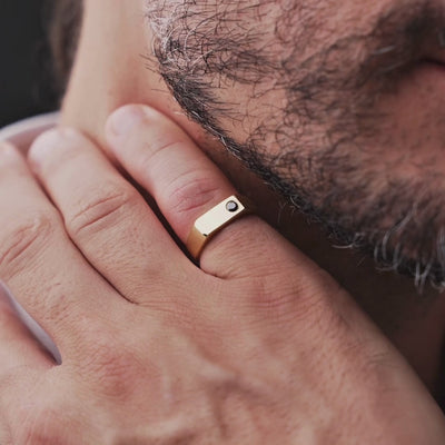 Our black diamond signet ring makes minimalism feel powerful. Featuring a single natural round brilliant cut black diamond set flush in your choice of 18ct white, yellow or rose gold.