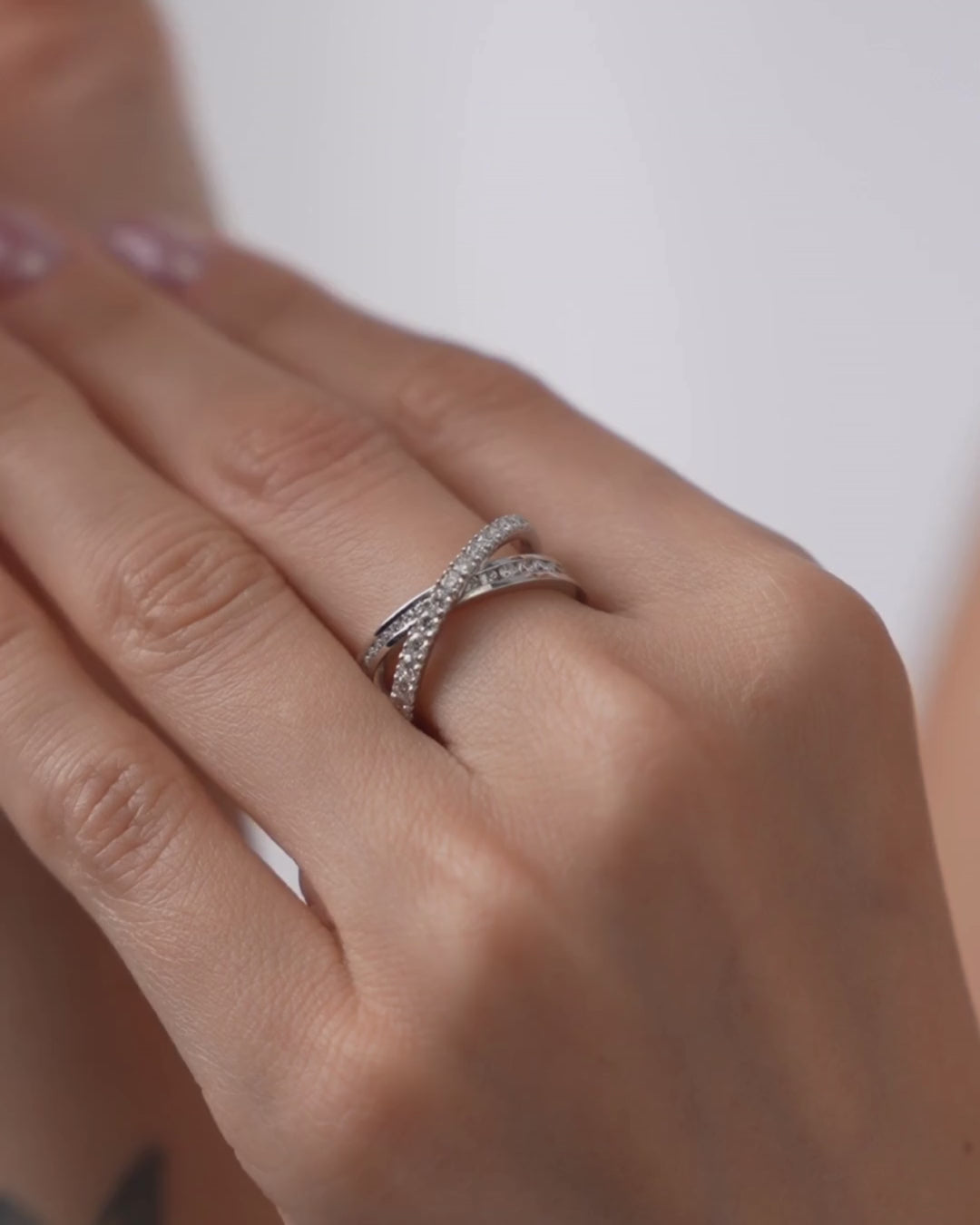 Exuding style and elegance, our criss cross diamond ring features two bands of claw set diamonds, delicately intersecting each other.